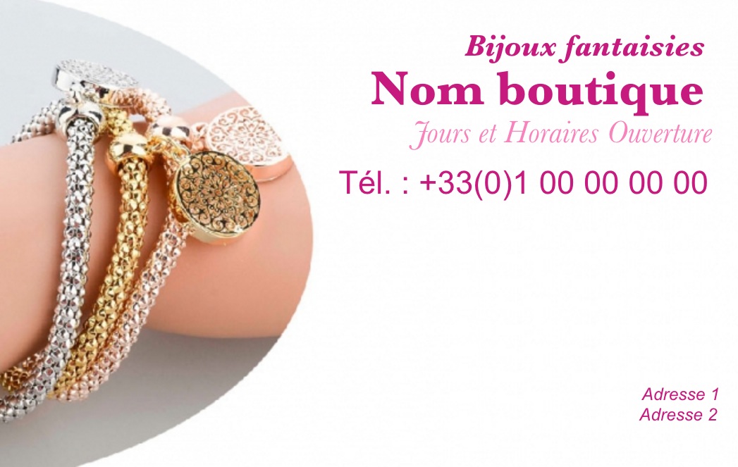 Carte de visite bijouterie, Modèle Gratuit à Personnaliser, pour Boutique de vente de Bijou avec fond médaillon bracelet