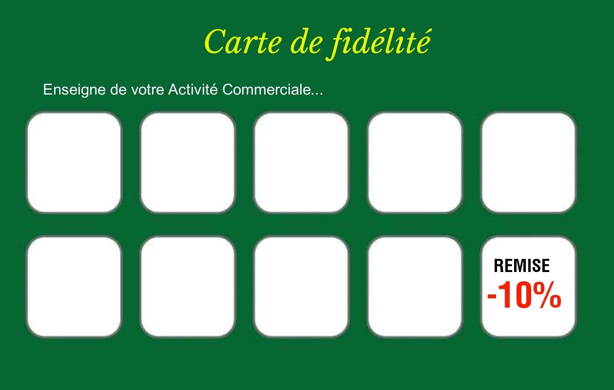Modèle carte fidélité, à personnaliser en ligne , nominative 10 cases fond vert sapin à personnaliser soi-même en ligne