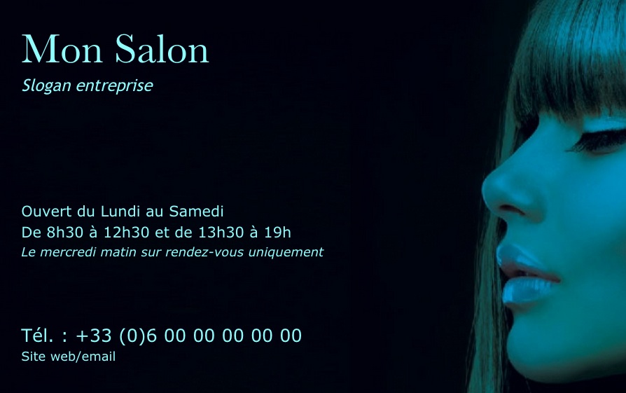 Coiffure, Carte de visite , modèle à personnaliser en ligne, modèle gratuit avec photo bleue