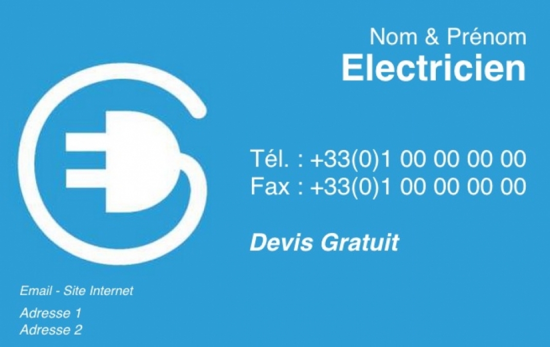 Modèle gratuit de Carte de visite électricien à créer en ligne, modèle design avec logo clair sur fond bleu